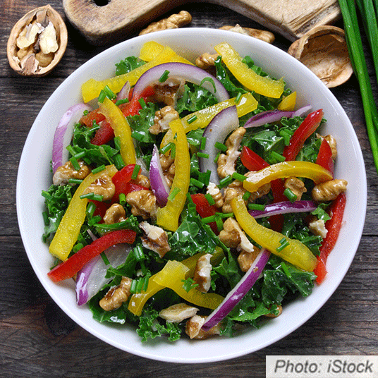 Enjoy the nutty crunch of walnuts and the bold taste of kale in this refreshing salad.